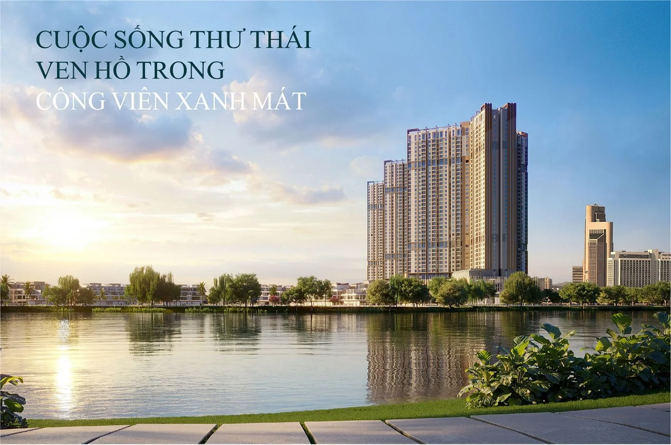 Xung quanh Galia Hanoi là hệ thống cảnh quan cây xanh, mặt nước bao phủ bởi;